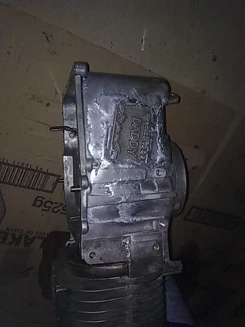 With the surface now hot enough (hot enough to smoke the plastic grips in my vice), I began welding…er soldering. It was at this point I realised fixing this would be a little tricker than expected. You see the rods are more of a solder than a welding compound. My aim was to weld a piece of scrap aluminum I’d picked up at a local steel recycler over the hole on the outside of the crank case, then seal the inside with more weld. Being a solder this was a difficult task. The outside weld went perfect. The inside on the otherhand was not so successful. Turns out because the rods are a solder, touching the inside of the piece of aluminium covering the hole, ended up shifting the outside (as the piece was sitting on a layer of molton solder). Quite a few attempts later I had finished the repair.