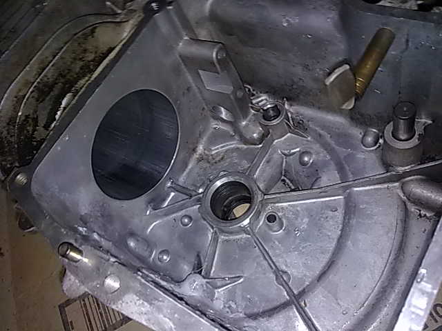 - Wide view of empy crankcase