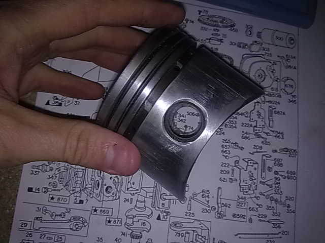 - Piston with scoring marks from sanding to fit cylinder