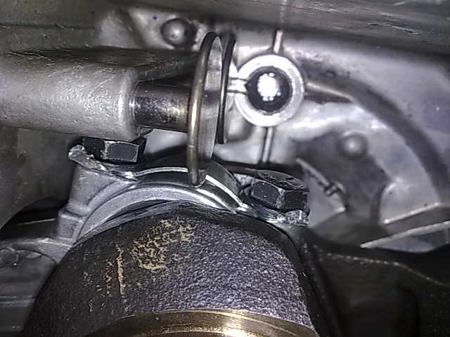 - Close up of retaining clips in piston