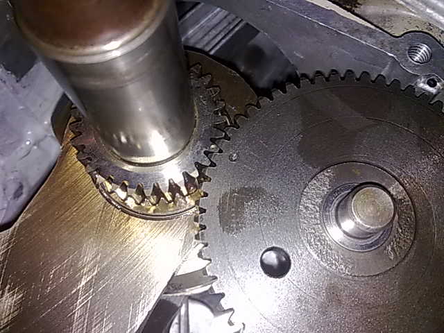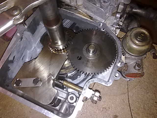 - Aligning the cam gear with the crank mark