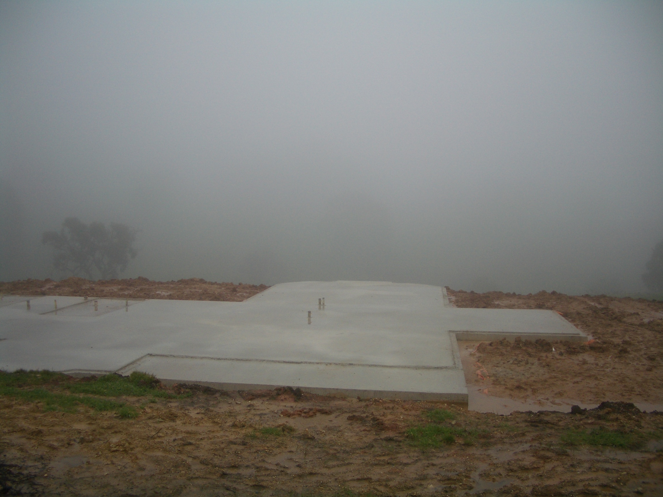 With winter well underway, it’s time for another update. Since the last blog post, quite a lots has happened. Format has poured the slab and hence our house is taking shape. I really do feel for the folks who poured the slab. I went up there and saw it taking place. The day was an absolute shocker! 8 degrees, 33 mm of rain fell, and it hailed! The poor buggers!. Having said that they did a good job. The slab, looks great, it’s pretty level – the best they could do in the weather. There’s a little bit of pitting due to the rain but nothing to cause concern.